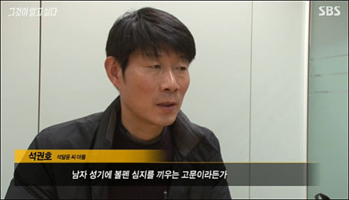 1980년 석달윤씨는 서울시경 정보과에서 형사로 근무했으나 안기부(국가안전기획부, 현 국가정보원)의 간첩 혐의로 47일간 고문을 받고 18년 동안 형을 살았다. 석 씨의 아들은 남자 성기에 볼펜 심지를 끼우거나 무릎 뒤에 각목을 끼워 매달아 놓는 등의 잔혹한 고문을 했다고 증언했다.