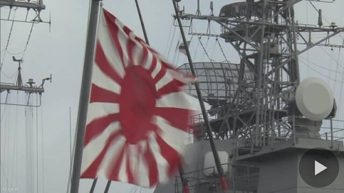 NHK에 의하면, 해양 자위대가 게양하는 ‘욱일기’가 해방 전의 군국주의를 상기시켜 한국 국민 정서를 고려하면 ‘욱일기’ 게양을 허락할 수 없다고 한국 측에서 전해왔다.