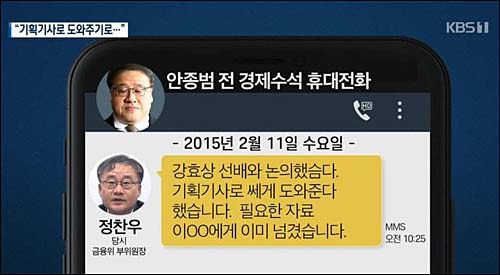 “박근혜 정부 시절, 청와대와 정부가 한국은행에 금리 인하를 압박한 정황이 담겨있는 안종범 전 경제수석의 문자메시지 내용을 KBS가 입수했습니다. 보수 언론에 기사를 청탁해 금리인하에 소극적인 한국은행을 비판한 건데요. 같은 달부터, 한국은행은 여섯 차례에 걸쳐 금리를 계속 내려 청와대와 정부가 개입했다는 의혹이 제기되고 있습니다.”