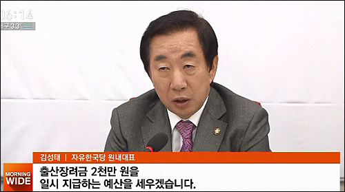 김성태 원내대표는 “임신하면 200만원, 출산시 출산장려금 2000만원을 주자”면서 저출산 대책으로 7조원의 예산을 주장했다.