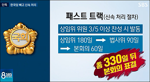 패스트트랙은 상임위 위원 5분의 3 이상이 찬성하면 발동되는 신속처리 절차로 330일이 지나야 본회의에 상정이 가능하다. 실제 입법이 되기까지 1년여 시간이 걸리지만 법 시행까지 1년 6개월의 경과 기간을 두자는 자유한국당의 주장을 감안하면 더 빠른 결과가 될 수 있다는 판단이다.