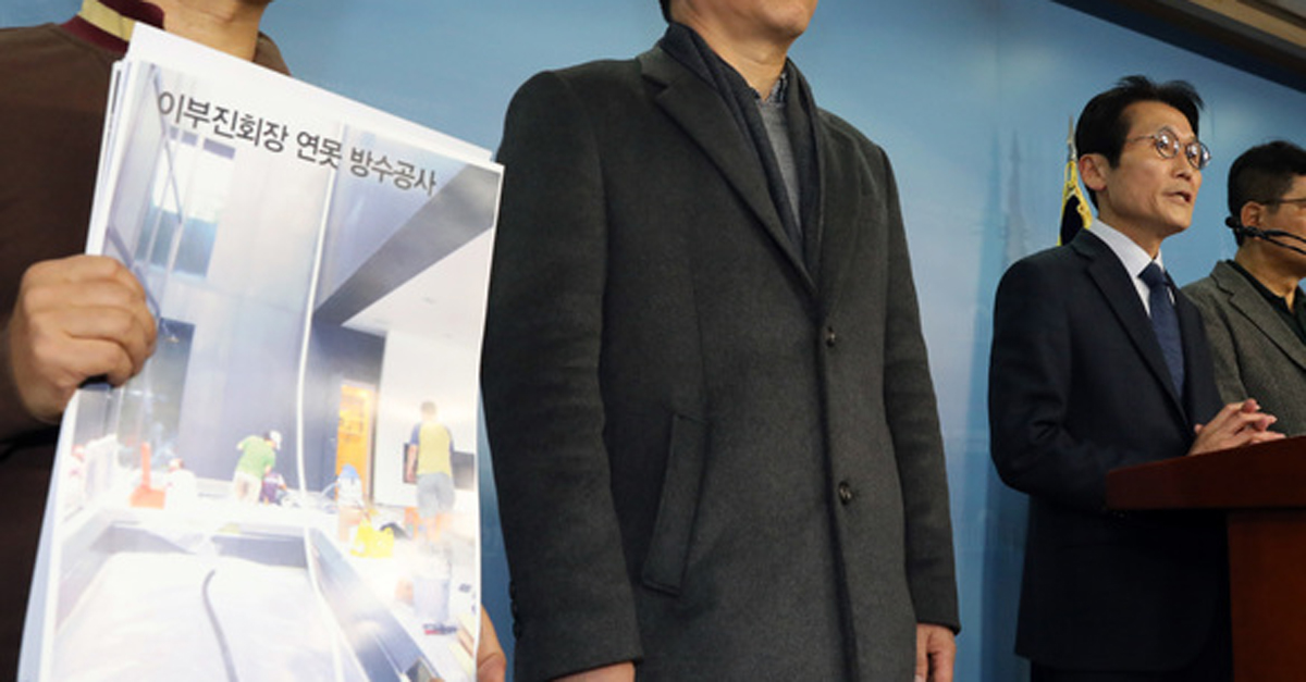 어제(8일) 윤소하 정의당 원내대표와 기자회견장에 함께 등장한 제보자는 곽상운 지스톤엔지니어링 대표입니다. 해당 업체는 이건희 회장 사랑채의 샤워실 방수 공사를 비롯해 이재용 부회장 자택의 기계실 코팅 등 수년간 이 회장 일가 자택들의 특수자재 공사를 맡았습니다.