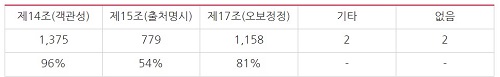 시민 방심위원회는 34차 안건에 적용할 수 있는 조항을 제14조(객관성), 제15조(출처명시), 제17조(오보정정)으로 제안했다. ‘없음’과 ‘기타 적용 조항 의견’도 택할 수 있도록 명시했고, 시민들은 적용 조항을 중복 선택할 수 있다.