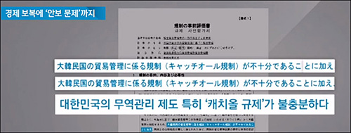 호사카 유지 교수는 “‘이번에 수출 규제 대상에 오른 3개 품목 중 에칭가스는 우라늄 농축에 사용된다, 아직 근거는 없지만 문재인 정권이 북한의 핵 제조까지 도와줄 수 있다’는 얘기를 하기 시작했다”고 말했다.