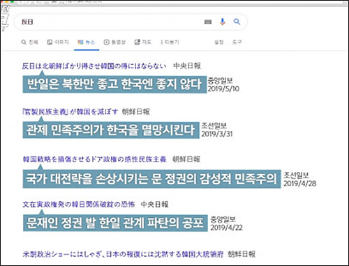 7. 조선일보 일본어판을 보면 동일 기사의 일본어 제목은 한글보다 훨씬 선동적입니다. 또, 국내 기사에 붙은 일방적 댓글을 일어로 번역해 제공함으로써 일본의 반한감정을 증폭시켜 한일관계가 악화된 원인 제공을 한 것으로 보입니다.