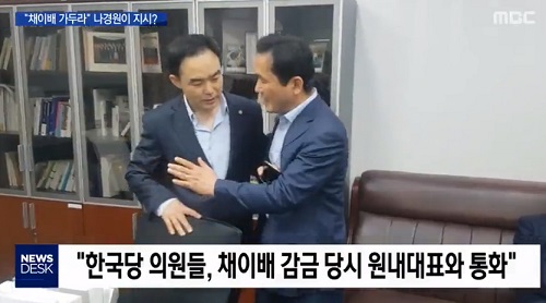 14일 MBC 보도에 따르면, 검찰은 김정재 원내부대표와 여상규 법사위원장 등 다수의 자한당 의원들이 채이배 의원 감금 당시 직접 나 원내대표와 통화한 뒤, “원내대표의 얘기라며 경찰이 올 때까지 감금을 풀면 안 된다”는 지침을 나머지 의원들에게 전파했다는 진술을 확보했다.