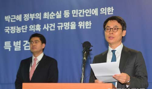 ▲ 2017년 2월27일 서울 대치동 '박근혜 정부의 최순실 등 민간인에 의한 국정농단 의혹 사건 규명을 위한 특별검사 사무실' 기자실에서 이규철 대변인(특검보)가 정례 브리핑을 하고 있는 모습. <사진제공=뉴시스>