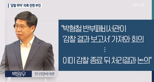 “그러나 백 전 비서관은 감찰 중단 요청 전화를 받았는지와 유 전 국장을 수사 의뢰 하지 않은 이유 등의 질문에는 답변하지 않았습니다.”