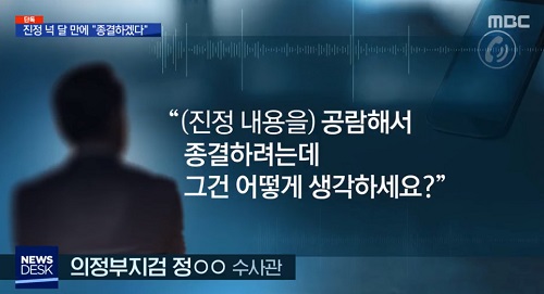 노 씨가 “이 사건이 윤석열 장모하고 (관련되어) 있어서 엄청 커질 것”이라며 이를 거부하자, 해당 수사관은 통화 말미에 “그런 취지로 해서 종결하도록 하겠다. 그게 더 나을 것 같다”고 거듭 수사 종결을 언급했다.