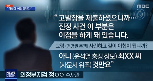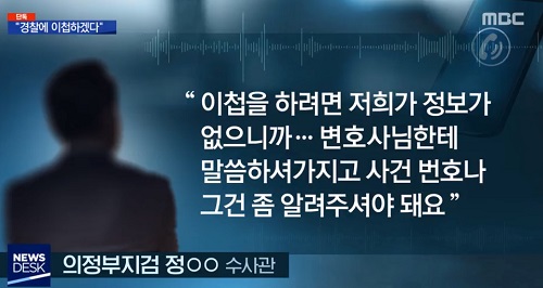 이 수사관은 의정부지검이 맡은 사건을 경찰에 이첩하겠다고 말하면서 노 씨에게 경찰의 수사담당부서와 사건번호 등의 정보를 요구하기도 했다.