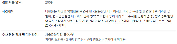 한편 참여연대 사법감시센터의 ‘MB 정부 5년 검찰보고서’에 따르면 1차 사건의 수사라인은 노환균 서울중앙지검장, 김주현 서울중앙지검 3차장검사, 권오성 서울중앙지검 특수2부장과 이태관 주임검사였다.