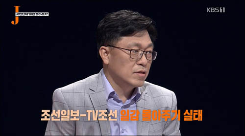 21일 방송된 KBS <저널리즘 토크쇼 J>에 출연한 하승수 세금도둑잡아라 공동대표의 <조선일보>를 향한 반문이다. 이날 방송에서 하 공동대표는 “사실 저는 그 기사 보고 너무 화가 났다”며 <조선일보>와 <중앙일보>의 ‘일감몰아주기’ 정황을 소개했다.