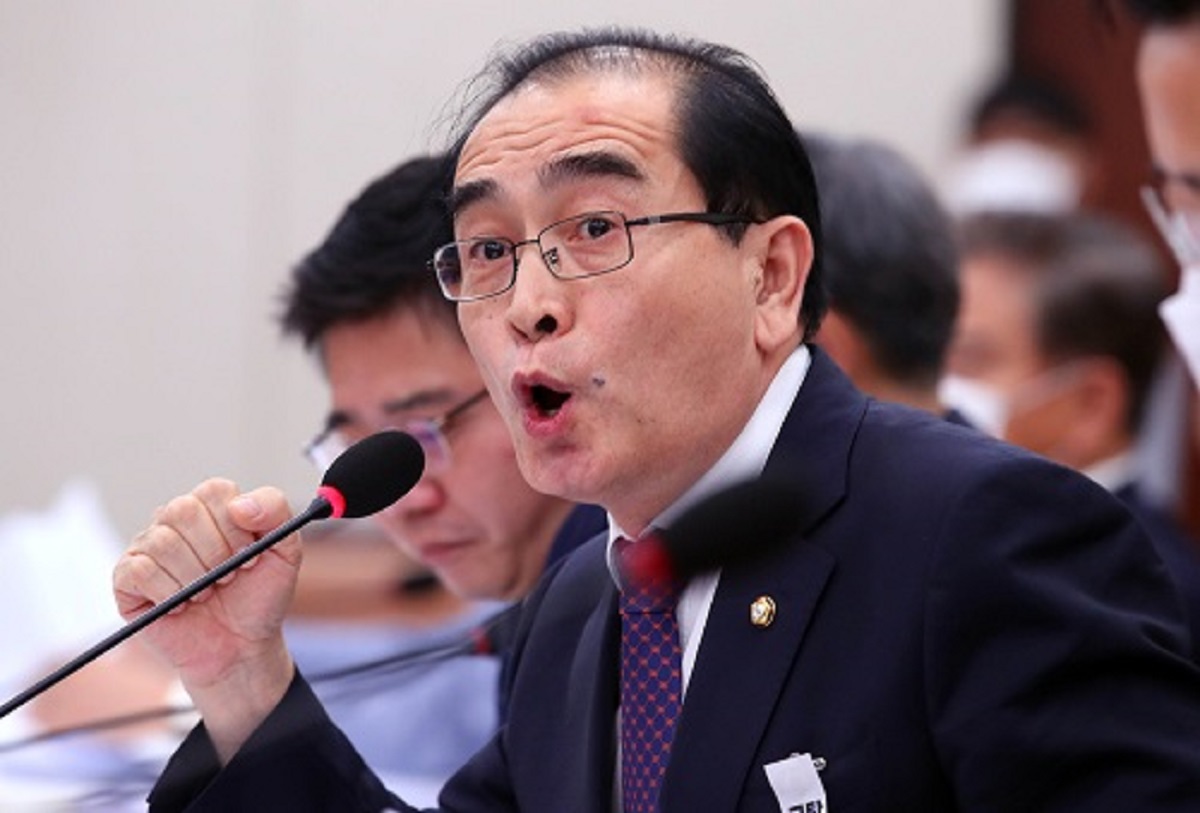 ‘연평도 공무원 피살 사건’에 대한 북한 김정은 국무위원장의 사과가 전해진 25일 오후, 탈북민 출신 태영호 국민의힘 의원이 국회 외교통일위원회에서 한 발언이다. 같은 날 서훈 청와대 국가안보실장은 김 위원장의 사과가 담긴 ‘조선노동당 통일전선부 통지문’을 공개한 바 있다.