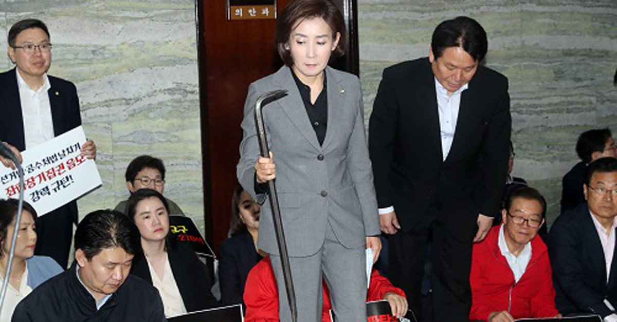 2019년 4월 선거법, 고위공직자비리수사처(공수처)법, 검경수사권 조정을 위한 사법개혁안 등 여야4당이 합의한 개혁법안 패스트트랙(신속처리안건 지정) 처리 당시 국회를 집단 점거했던 일을 지적한 것이다.