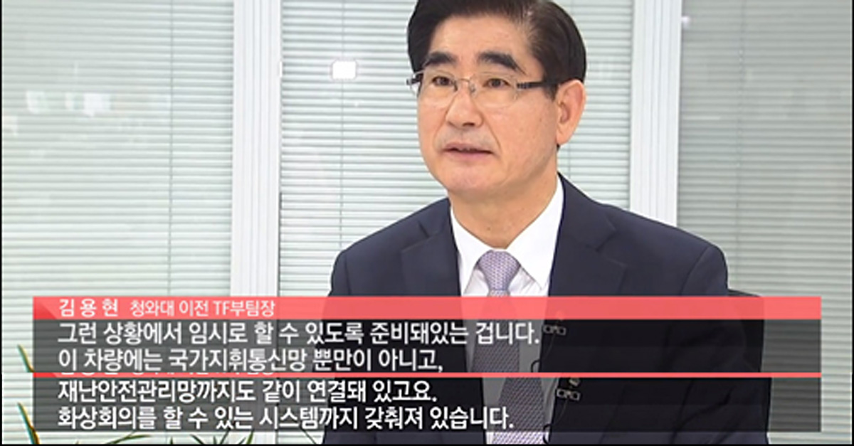 김용현 부팀장은 25일 YTN ‘뉴스가 있는 저녁’과의 인터뷰에서 “지휘통신차량에는 국가지휘통신망 뿐만이 아니고, 재난안전관리망까지도 같이 연결돼 있다”며 “화상회의를 할 수 있는 시스템까지 갖춰져 있다”고 했다.