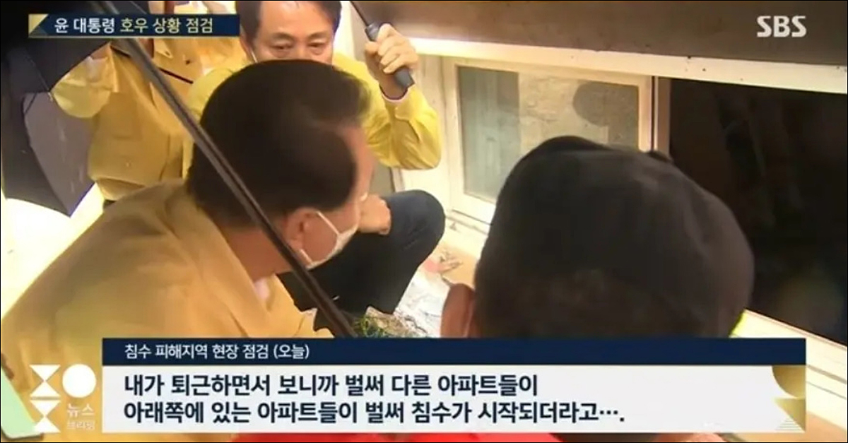 윤석열 대통령은 전날 집중호우로 일가족 3명이 사망한 서울 관악구 신림동의 반지하 주택을 찾았다.