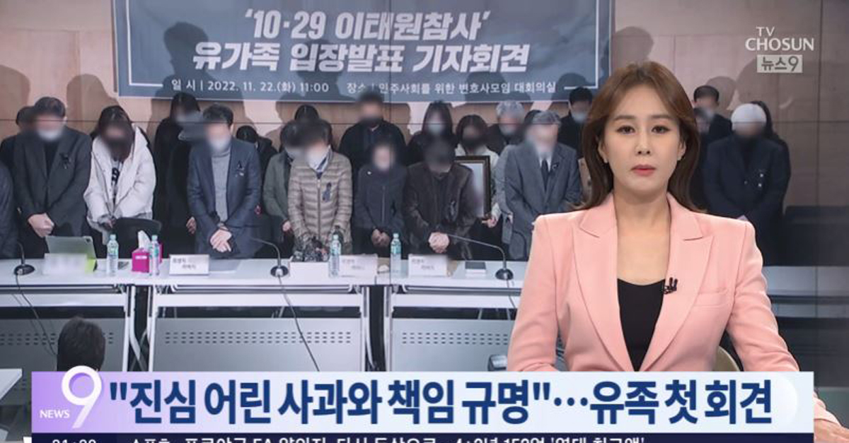 공개된 기자회견을 두고 ‘흐림 처리’한 언론 보도에 대해 비판도 등장했습니다. 오마이뉴스 <유족이 공개한 이태원 희생자, ‘흐림’으로 가린 KBS·YTN>(11월 23일 신상호 기자)은 이태원 참사 유족들이 “희생자 사진과 이름 등을 공개한 가운데, 공영방송인 KBS와 한전KDN 등 공공기관이 대주주인 YTN이 희생자 사진을 보이지 않게 흐림 처리해 의문이 제기”된다고 지적했습니다.