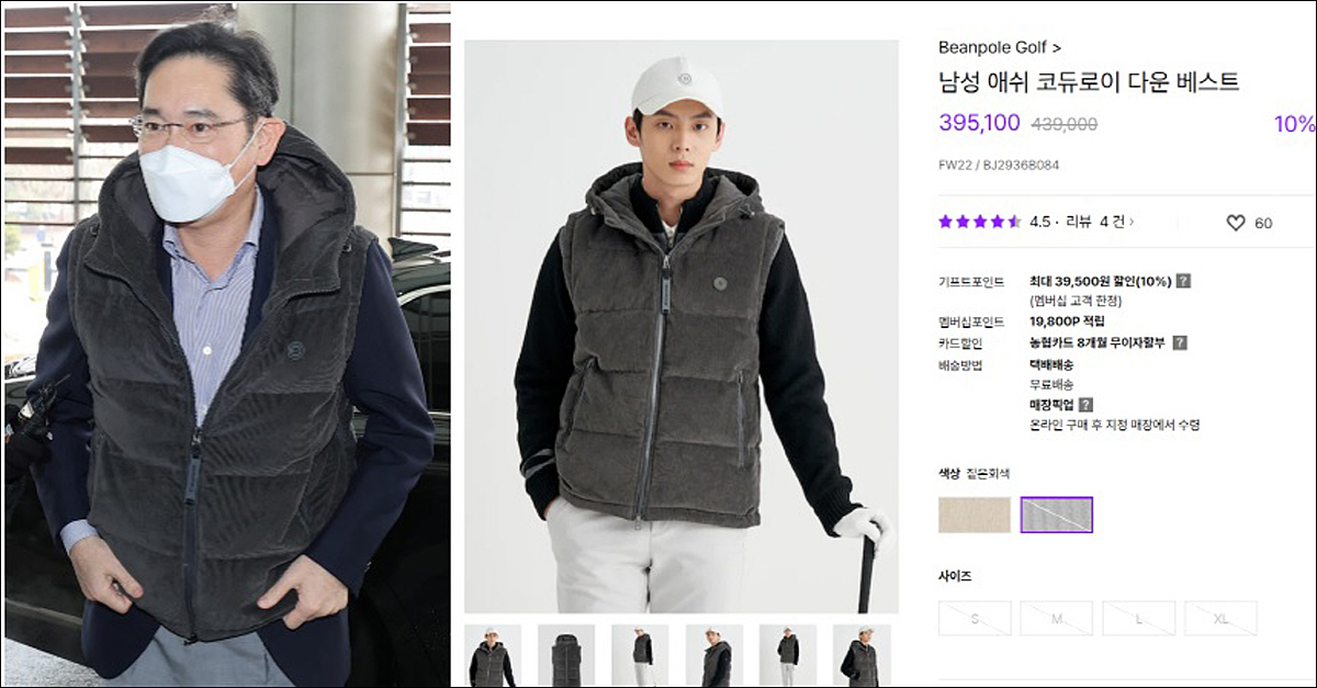 흡사 홈쇼핑 같은 기사도 등장했는데요. 서울신문 <이재용, 출장길에 패딩조끼…하루 만에 다 팔렸다>(12월 22일 김유민 기자)은 “22일 오전 현재 같은 제품은 m 사이즈 단 1점을 제외하고 모두 품절”됐다며 “마지막 남은 상품을 클릭하면 ‘품절임박’이라는 안내”가 뜬다고 알렸습니다.
