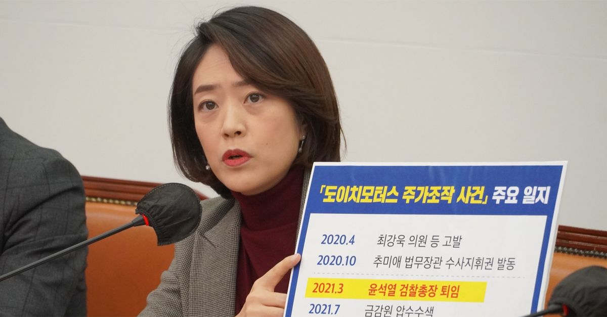 고 최고위원은 “2009년부터 2011년까지 진행되었던 도이치모터스 주가조작 사건은 2012년 금감원에 의해서 검찰 수사가 의뢰되었지만 석연치 않게 수사는 진행되지 않았다”며 “당시 윤석열 대통령은 대검 중수부 과장·서울중앙지검 특수부장 검사였고 검찰총장이 되었다”고 짚었다.