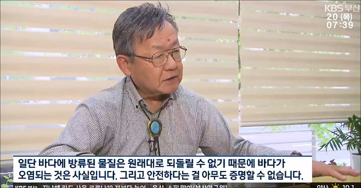 그는 “이러한 물질을 바다에 흘려보내면 아무리 희석하고 정화한다고 해도 대량의 처리수 혹은 오염수가 바다를 굉장히 오염시킬 것이 분명하다”고 강조했다.