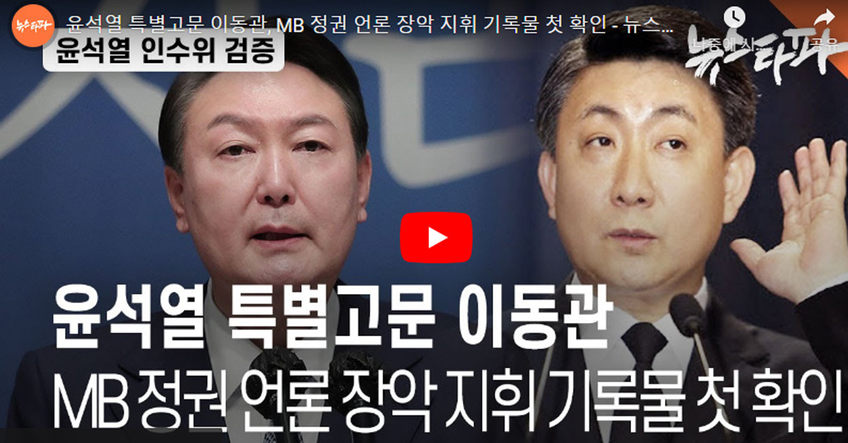 뉴스타파는 지난해 4월 14일 <윤석열 특별고문 이동관 MB정권 언론 장악 지휘 기록물 첫 확인>에서 대통령기록물과 국가정보원 내부 문건에서 MB정권 당시 언론 장악의 증거를 찾아내 보도했다.