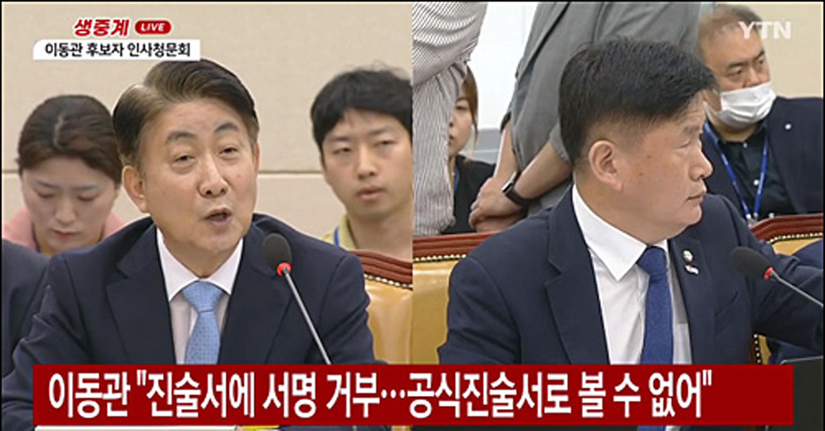 그러면서 이 후보자는 “이 학생들이 나중에 서명날인을 하라고 했더니 거부했다, 어떻게 공식진술서이냐”라며 “아무 서명날인도 돼 있지 않은 것을 진실이니까 인정하라고 하면 강변”이라고 했다.