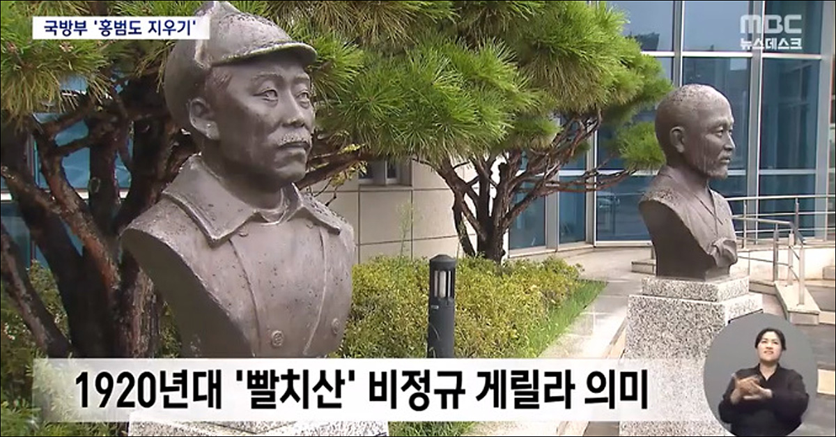국방부는 28일 기자들에게 보낸 ‘육사의 홍범도 장군 흉상 관련 국방부 입장’이란 자료에서 “홍범도 장군의 빨치산 증명서에는 활동기간이 1919∼1922년으로 기록되어 봉오동과 청산리전투에도 빨치산으로서 참가했다는 의혹도 있음”이라고 기재했다.