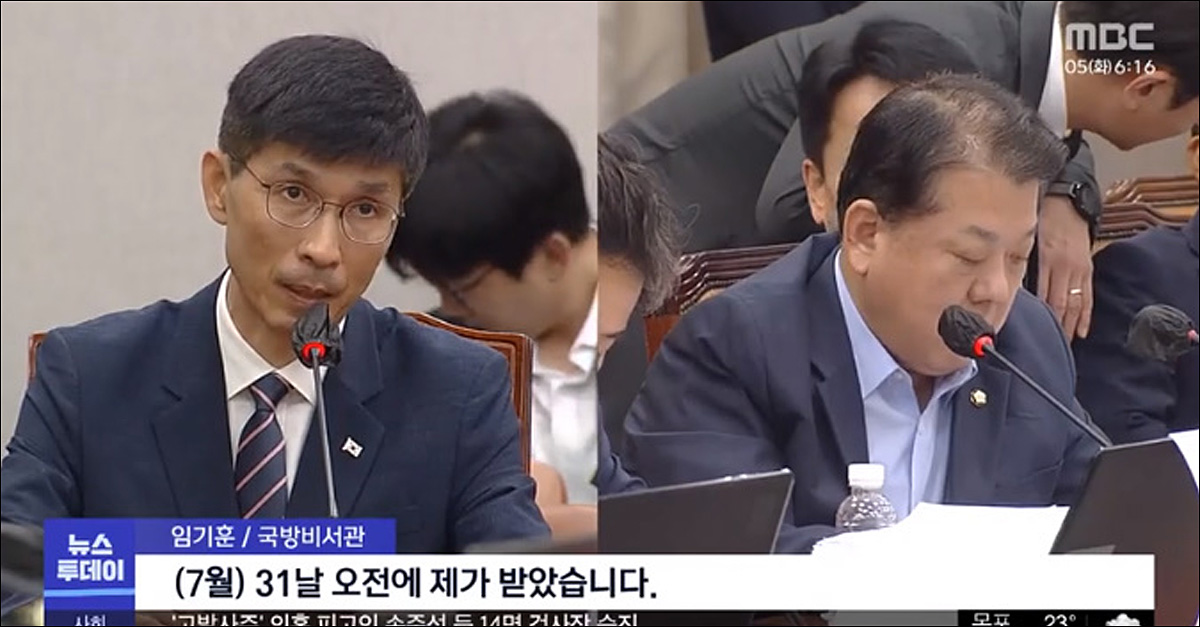 김병주 의원이 “(회의에서 대통령께)국방비서관도 보고 드렸는가”라고 묻자 임 비서관은 “저는 보고드린 바 없다”고 답했다.