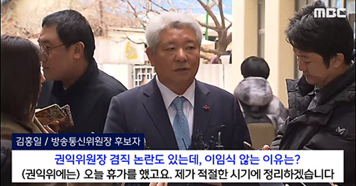 김홍일 방송통신위원회 위원장 후보자가 국민권익위원장 겸직 논란에 대해 13일 “적절한 시기에 정리하겠다”고 말했다.