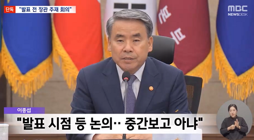 ‘해병대 채 상병 사망사건’ 수사 외압 의혹이 일고 있는 가운데, 국방부 조사본부가 해당 사건 재검토 결과를 발표하기 나흘 전에 이종섭 당시 국방부 장관이 조사본부 간부들을 불러 회의를 열었던 사실이 추가로 드러났다.