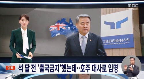 윤석열 정부가 ‘채 상병 사망사건’ 수사 외압 의혹 핵심 피의자로 이미 석 달 전에 공수처에 의해 출국금지 조치된 이종섭 전 국방부 장관을 주호주대사에 임명한 것으로 드러났다.