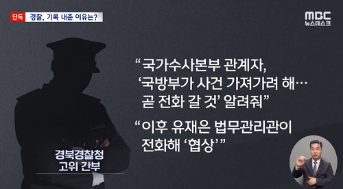 경북경찰청 간부는 MBC에 국방부 유재은 법무관리관과의 통화 끝에, 수사기록을 경찰이 ‘반환’하는 게 아니라 국방부가 ‘회수’하는 걸로 최종 결정됐다고 밝혔다.