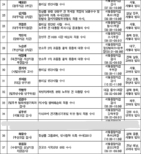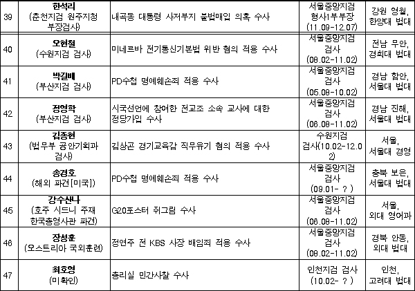 (편집자주 : 참여연대의 요청으로 명단 중 1명의 검사를 제외합니다)