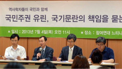4일 하일식 한국역사연구회 회장(연세대 사학과 교수)등은 참여연대 느티나무홀에서 기자회견을 열고 ‘국민주권 유린, 국기 문란 범죄에 온 국민이 나서서 책임을 물어야 합니다’란 제목의 성명을 발표했다.