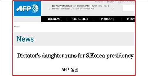 그간 로이터 통신, 뉴욕타임즈, 르몽드, 미국 AP통신사, 프랑스 AFP 통신사 등 해외 유수 언론들은 박근혜 후보를 소개할 때 ‘독재자(dictator's daughter) 박정희 전 대통령의 딸’로 표현해왔다.