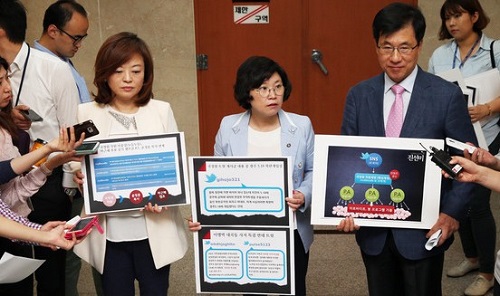 이날 신경민 의원은 “지난해 대선 당시 문재인 후보의 금강산 관광 재개 공약을 비방한 ‘nudlenudle’계정 운영자는 국정원 직원 이종성으로 확인됐다”며 “이미 민주당이 검찰에 고발한 상태”라고 말했다. 이어 “검사가 직접 공판장에서 물어본 ‘wlsdbsk(진유나)’와 ‘taesan4(신사의 품격)’ 계정 등의 신원을 확보했다”고 말했다.