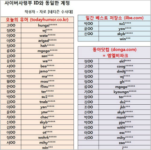 한 네티즌, 軍 사이버司 요원 아이디 활약상 공개