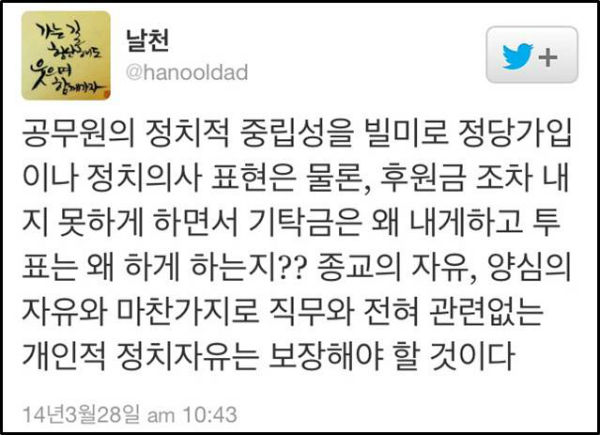 해당 소식을 접한 후 네티즌들은 국가정보원의 댓글 활동 등을 거론하며 헌재의 결정을 이해할 수 없다는 반응들을 보였다. 네티즌들은 “국정원과 같은 국가기관이 공무원들을 이끌고 대선에 개입하면 헌법에 위배되지 않냐?”(노고**), “문제는 전교조 같은 쪽에만 엄격하게 중립의무를 적용한다는 것이지. 국정원은 왜 그냥 놔두고 있나?”(광**), “국정원은 정치활동 해도 되는건가요? 국정원은 되고 공무원 교원은 안 되고 법이 왜 그래~”(나자**), “합법화 해야지~ 국정원이고 정부기관에서는 대놓고 정치에 관여하면서”(청춘**) 등의 글들을 게시했다.