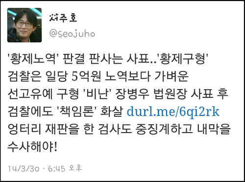 ‘황제노역’ 판결을 한 장병우 광주지법원장이 사표를 내자 이번에는 일당 5억 노역보다 가벼운 선고유예를 구형한 검찰의 책임론이 고개를 들고 있다.