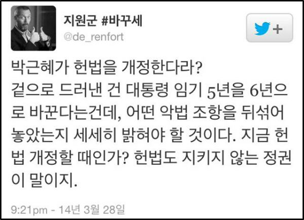 네티즌들은 “대선 때 공약부터 지켜라”(스**), “신유신?”(이젠****), “4년 연임제로 책임정치 구현해야”(shr***), “4년 중임제로 가자. 부패한 정부의 5년은 너무 길고 청렴한 정부의 5년은 너무 짧다”(hi**), “그냥 입헌군주제에 절대왕권을 누리시지”(시라**), “영구집권하려 애를 쓰는구만”(승자***), “4년 중임제가 상식적인거 아닌가”(혼*) 등의 반응들을 보였다.