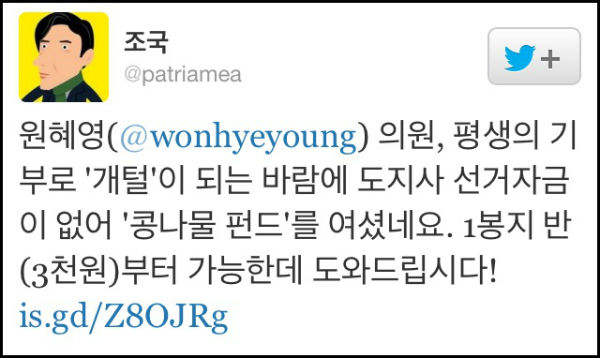 경기도지사 예비후보로 나선 새정치민주연합 원혜영 의원이 선거비용 마련을 위한 ‘기부천사 원혜영 콩나물 펀드’를 출시했다. 문재인 의원과 심상정 의원 등 주요 인사들 응원이 이어지고 있다.