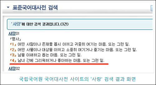 국립국어원 ‘사랑’ 사전적 정의 다시 바꿔