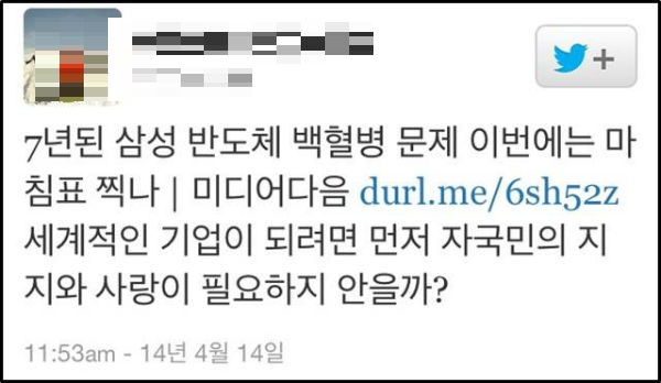 삼성전자가 14일 반도체 사업장의 백혈병 산업재해 의심 논란과 관련해 경영진의 공식 입장을 이른 시일내에 내겠다고 밝혔다.
