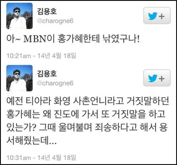 김용호 <스포츠월드> 기자는 자신의 트위터에 “홍가혜 정체는 제가 알아요. 사기 혐의로 검찰 조사를 받은 적 있습니다”며 관련 글을 잇따라 게재했다.
