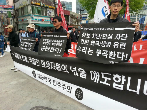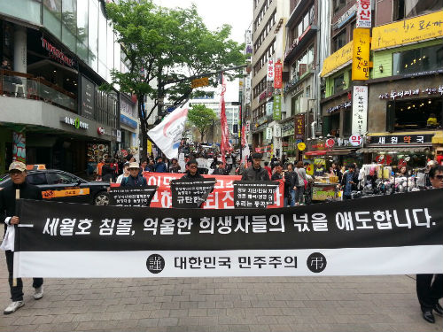 시민연대는 이날 세월호 참사에 대한 애도를 표하면서 “이명박 구속”, “박근혜 퇴진” 등의 구호를 외치며 부정선거 처벌을 촉구했다.
