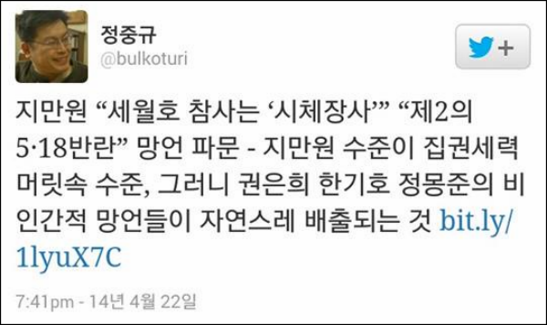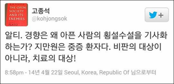 이에 고종석 작가는(@kohjongsok) “지만원은 중증환자”라고 비꼬았고, 정중규 대구대학교 한국재활정보연구소 부소장은(@bulkoturi) “지만원 수준이 집권세력 머릿속 수준”이라고 비판했다.