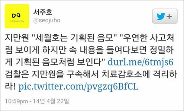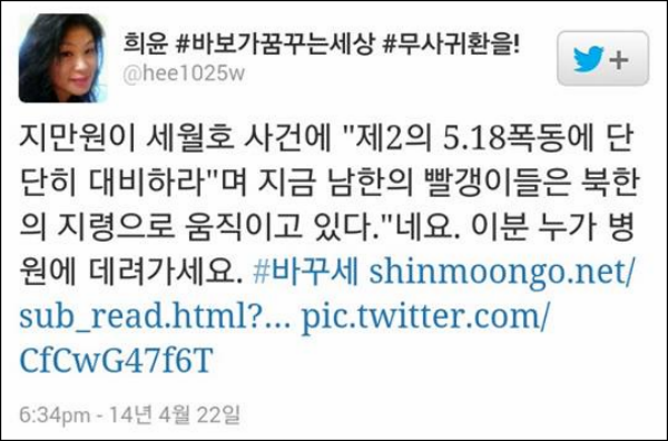 그는 "팽팽한 긴장 상태에서 도박으로 살길을 뚫어야 하는 것이 김정은의 토정비결이다. 세월호 참사는 이런 도박을 알리는 신호탄"이라며 "제2의 5·18 폭동, 이것이 반드시 일어날 것이라는 확신 하에 대통령은 단단히 대비해야 할 것"이라고 덧붙였다.
