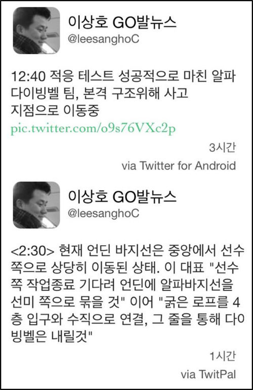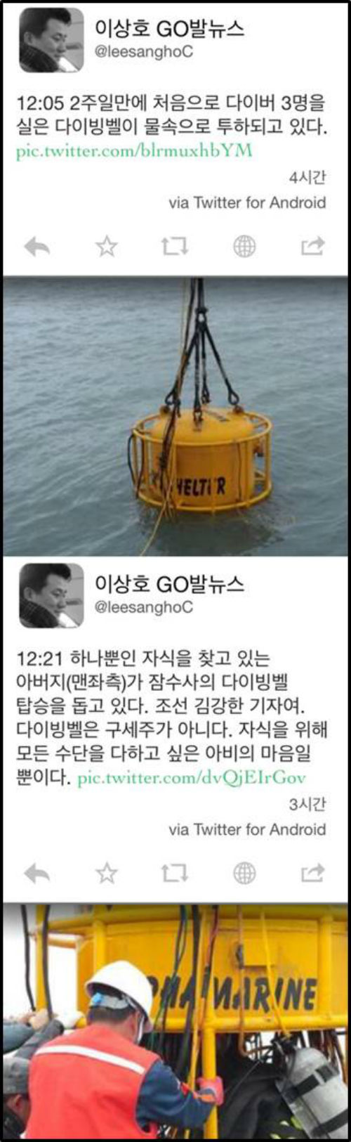 이상호 기자 트위터 생중계.. 가동시험 참가 다이버 ‘긍정평가’