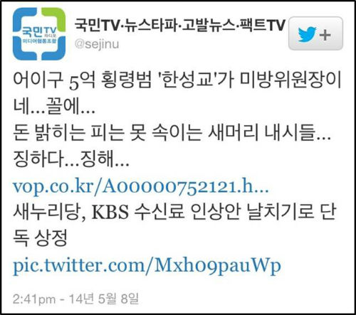 - [SNS] KBS, 사상 검증?.. “수신료도 사상검증해서 내야”