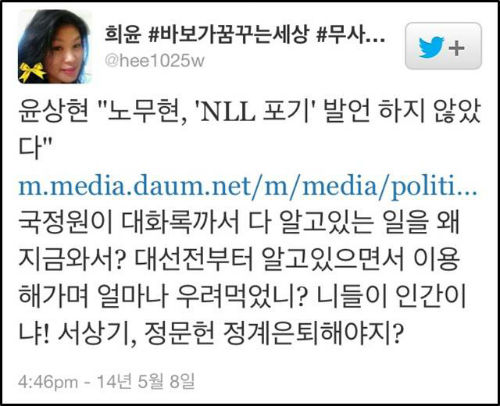 해당 소식을 접한 네티즌들은 윤 의원에게 비난을 쏟아냈다. 윤 의원은 지난해 NLL 포기 논란 과정에서 “노 전 대통령은 비정상적인 저자세로 굴욕적 정상회담을 김정일 북한 국방위원장과 했다. NLL 문제에 ‘사실상 포기’하는 태도를 보였다”고 주장한 바 있다.